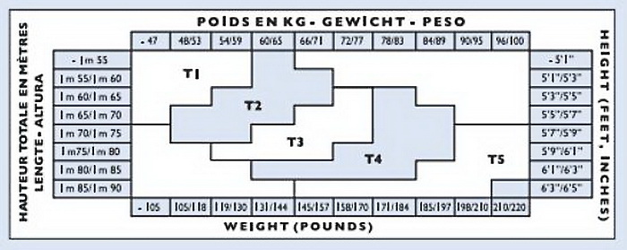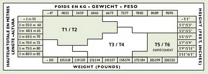 Таблица размеров колготок Le Bourget с размерным рядом 1/2, 3/4, 5/6